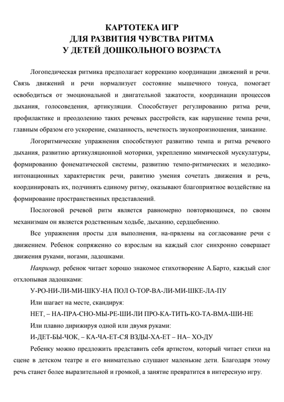 Картотека игр для развития чувства ритма у детей дошкольного возраста.