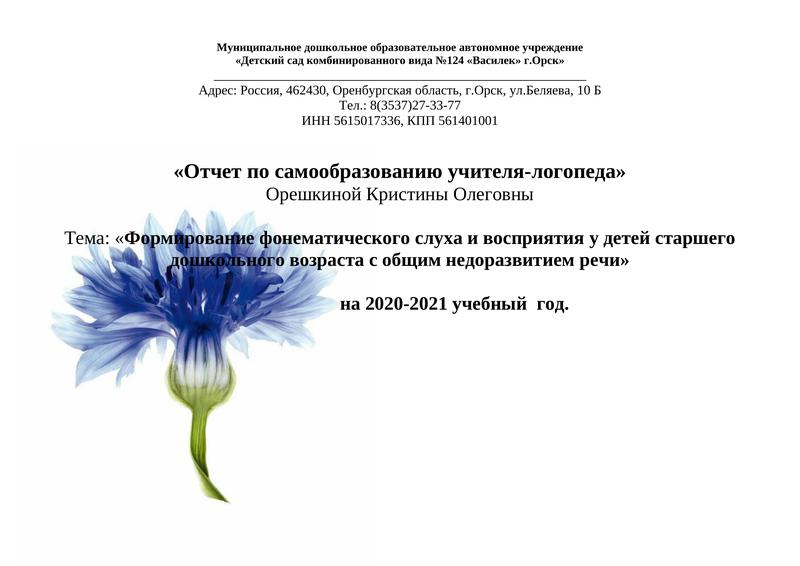 Учитель-логопед МДОАУ №124 г.Орска Орешкина Кристина Олеговна