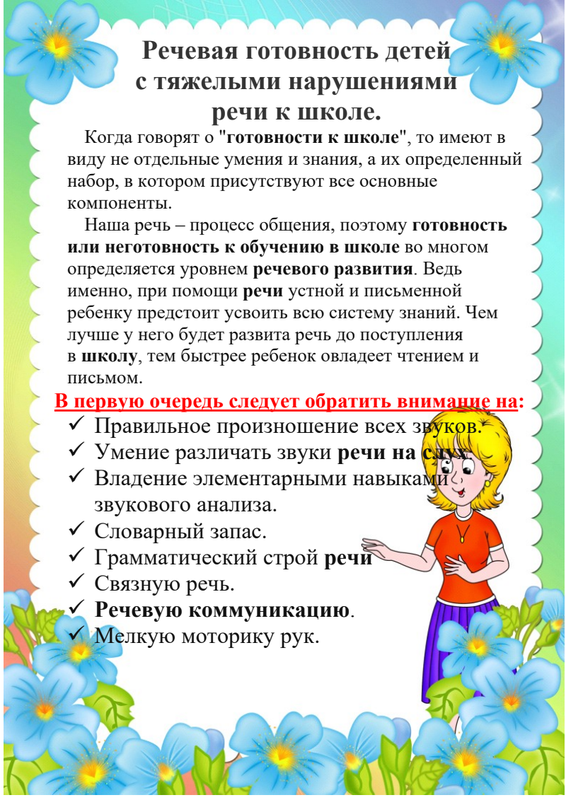 Консультация Речевая Готовность К Школе Детей С Тнр