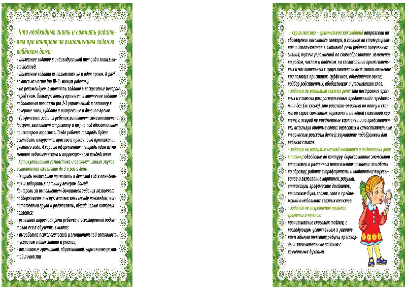 Буклет: "Зачем учитель-логопед задает домашние задание?"